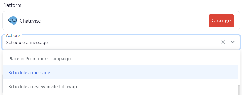 Click on the Change button to select which platform you'd like to use for your action. Different platforms will have different actions to choose from.